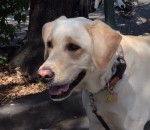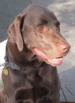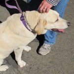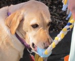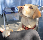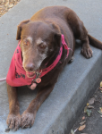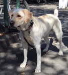 We recently introduced ourselves to Jim with Toby riding happily in his cart along the Bay Trail, where the two can be seen every single day. Almost 3 months have passed since surgery, and Toby sometimes walks alongside the cart as Jim pushes it; they usually stop at the creek and Toby will paddle around, as Labs love to do, and when he’s tired, he gets back into the cart for the ride home.