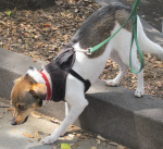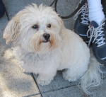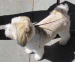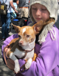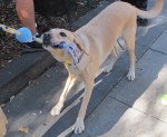 Eventually, I moved back to the Palo Alto area, and about three months ago I drove Sandy the 2,000 miles from south Texas to California. He enjoys his new home and meets and plays with the neighborhood dogs at a local park. He is also a regular among the dogs who visit the downtown Farmer’s Market.