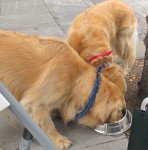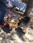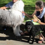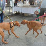 ]]>Long-time companions of Nancy Pleibel, a manager at the Farmer’s Market, Ginger & Peaches used to wait in Nancy’s car until closing time. Recently, Nancy asked if she could leave the two dogs tied up to a signpost behind the FoPAAS tables. We said Yes, so she brought out a plush bed and a flannel blanket for the dogs’ comfort and left them watching the activity on the street from their little perch on the curb.