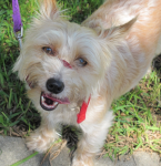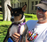 Two years ago Jim and Toby came to the Bay Area to care for Jim’s elderly father who was in frail health. They thought the visit would be brief, but that was not to be. When Toby began to show signs of illness, tests revealed spleen cancer. Toby was given just a week to live. The veterinarian was not optimistic, saying Toby might not survive spleen removal, and even successful surgery would not buy him much extra time.