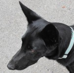 I rode by, and he growled at me. Fifty yards later and curious, I turned around and rode by again with the same result. Undeterred, I parked the bike a few yards down the road and walked cautiously back. He was all black, dirty, skinny, and scared. Just on a hunch, I called out, “Blackie, is that you?”